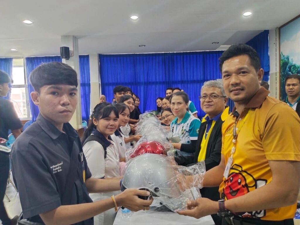 Asian Palm Oil Public Company Limited supported the activities of the 38th Anniversary of Occupational Safety Day 2023 under the name “Road Safety Standards Project in Educational Institutions” at Krabi Technical College. The purpose of the event was to promote road safety for students, faculty, and staff in educational institutions. The event featured a variety of activities, including lectures on road safety, demonstrations of safe driving, radio-controlled car racing, and many more. Asian Palm Oil Public Company Limited representatives also distributed Asian Plus drinking water to participants by participating in this event, Asian Palm Oil Public Company Limited recognizes the importance of road safety and is committed to raising awareness and building a culture of road safety among youth, who are the future of the nation.