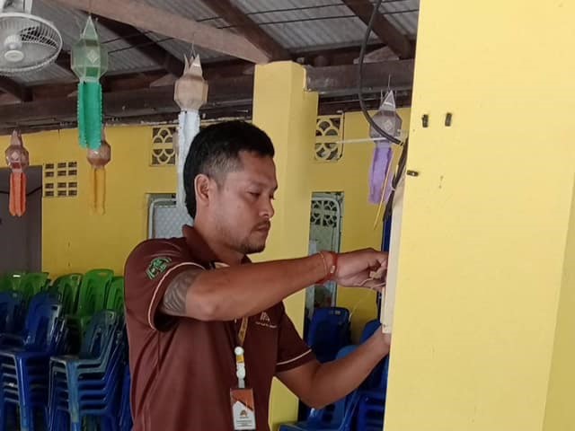 Asian Palm Oil Public Company Limited (มหาชน) partnered with the Krabi Provincial Industrial Office to organize a volunteer activity to preserve religious sites. The company donated electrical equipment for maintenance work inside the religious site.