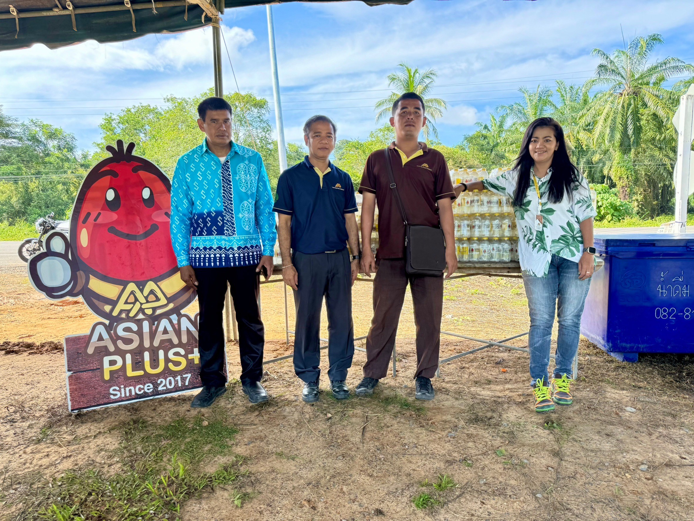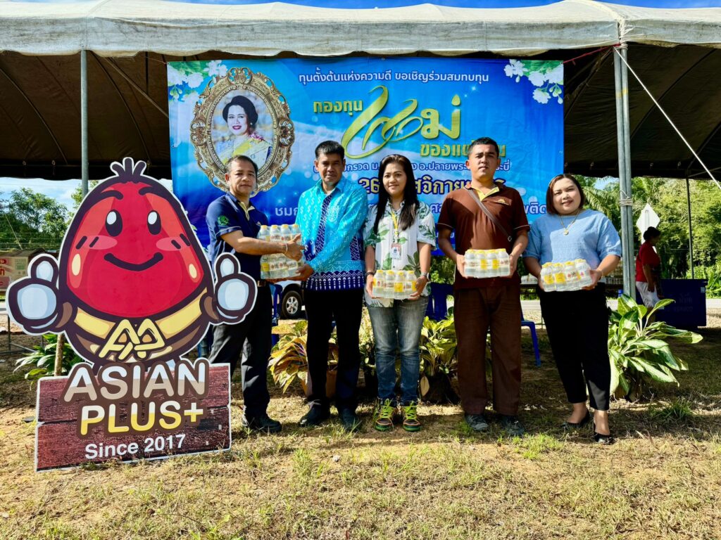 Asian Palm Oil Public Company Limited donated 100 packs of Asian Plus drinking water to the Mother of the Land Fund in Ban Huay Krawd, Ao Luek District, Krabi Province. The donation was made in support of the fund’s upcoming charity football tournament.