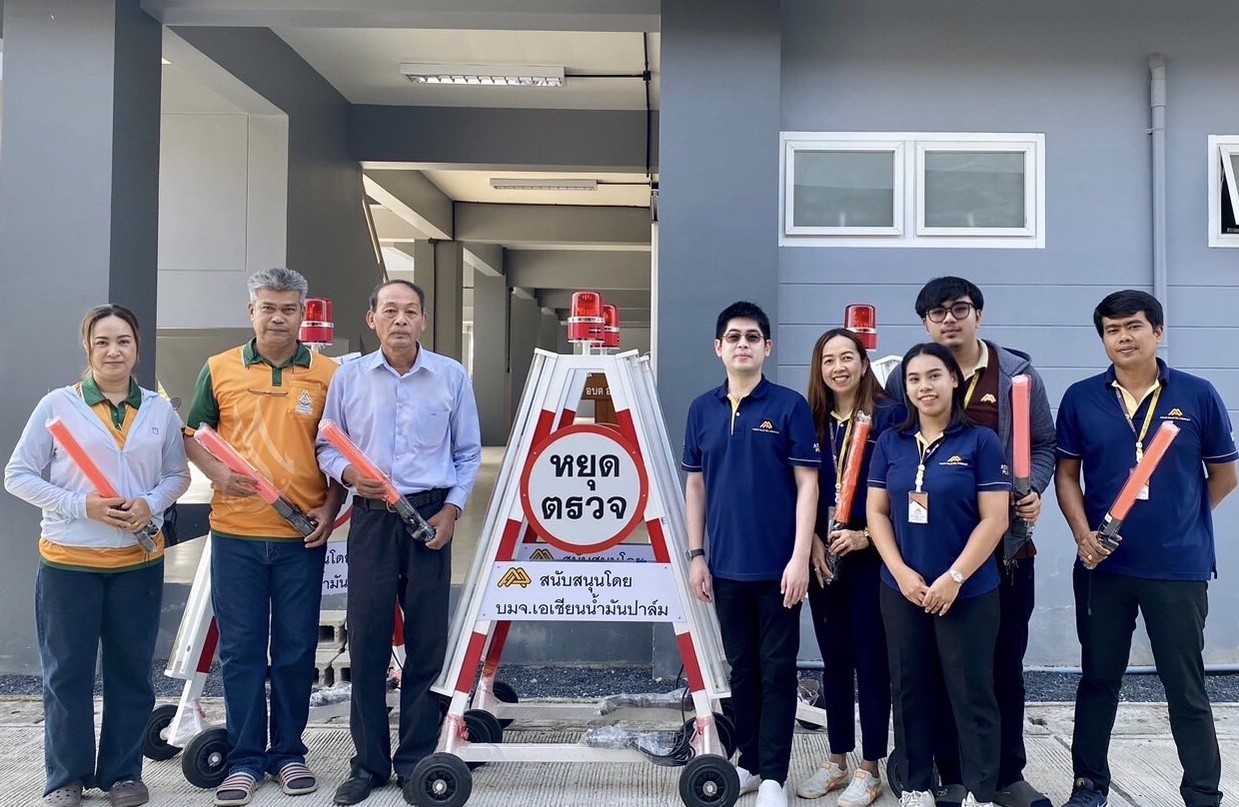 7 February 2024, Asian Palm Oil Public Company Limited provided 3-way flashing batons and transparent triangle stop signs to support the Ao Luek Tai Subdistrict Administrative Organization surveillance of risky behavior that may cause danger to citizens in the area Preventing road accidents Including facilitating the convenience of road users traveling during the festival. in providing supporting equipment to Ao Luek Tai Subdistrict Administrative Organization This time it will help illuminate and alert road users. and allows officials to conveniently and safely inspect road users.