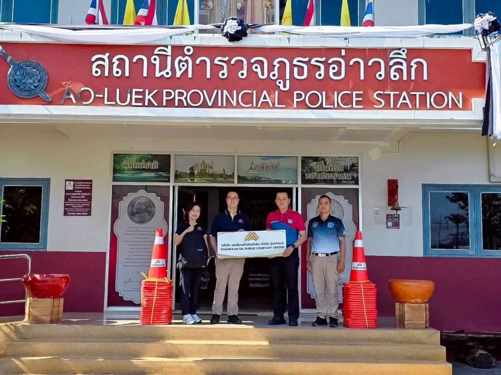 บริษัท เอเชียนน้ำมันปาล์ม จำกัด (มหาชน) ได้มอบ เครื่องคอมพิวเตอร์โน้ตบุ๊ค และกรวยยางจราจร ให้แก่ สถานีตำรวจภูธรอ่าวลึก
